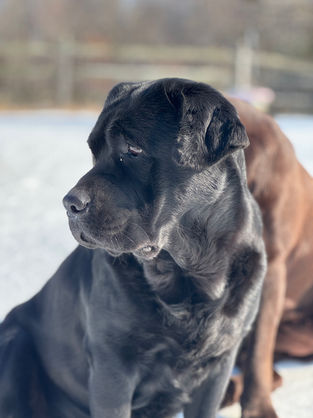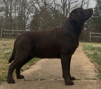 Where to begin with miss Georgie.. For starters, Georgie has the sweetest most gentle demeanor. Georgie has a soft personality that is all lover and no fighter. She doesn't have one mean bone in her body and is always smiling. Some of our labs have a nice protective side to them, Georgie is all love and cuddles. It is so easy to have her around as she so happy to just smile and follow what everyone else is doing or what ever we are doing. We just adore this sweet, happy girl.